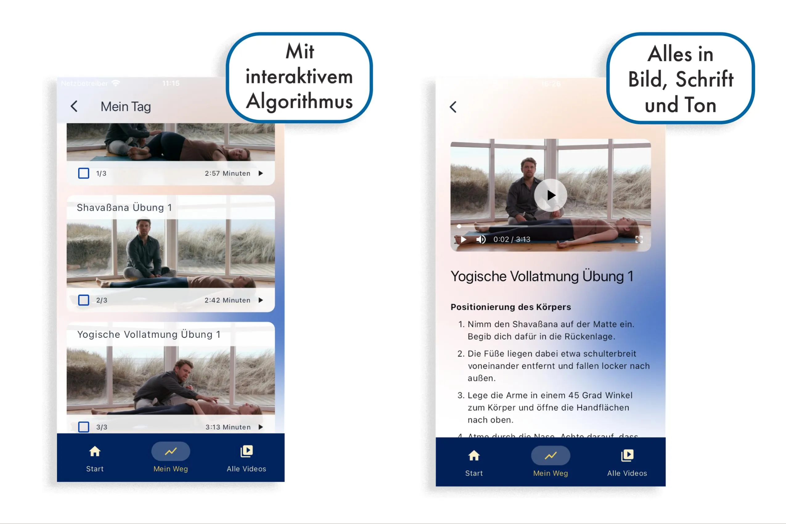 Die MediYogi App ist ein tolles System, um Jung und Alt Yoga von Grund auf richtig beizubringen. Die einzelnen Yoga-Positionen (Asanas) und die geistigen Techniken werden dabei Schritt für Schritt anspruchsvoller, jedoch alles in deinem individuellen Tempo. So lernst du zunächst, die einzelnen Übungen richtig aufzubauen und sie dann in medizinisch sinnvollen Sequenzen miteinander zu verbinden. Hieraus entwickeln sich einfache und dann immer komplexere Yogastunden. Egal, wo du Yoga praktizierst, das von MediYogi gelernte Wissen wird dir überall begegnen und dir ein Leben lang ein treuer und hilfreicher Begleiter sein.